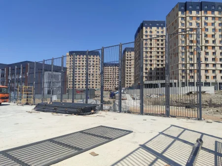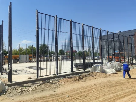 Продолжаем возводить ограждение футбольного поля на объекте ЖК RAMS CITY