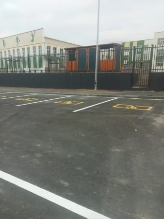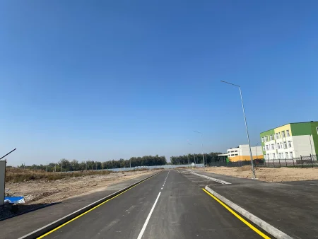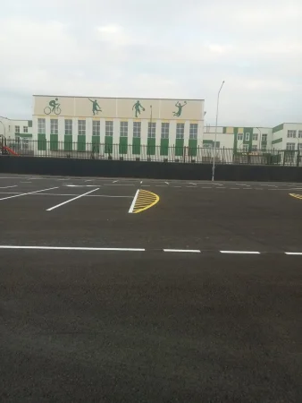 Нанесли разметку на территории школы, располагающейся возле ТРЦ Aport Mall, южнее Кульджинского шоссе и севернее Талгарского тракта, а также изготовили и установили дорожные знаки. Новая комфортная школа рассчитана на 2 тыс. учеников и находится в перспективном районе Алматы. В 200 метрах от школы — крупнейший ТРЦ города Aport Mall.